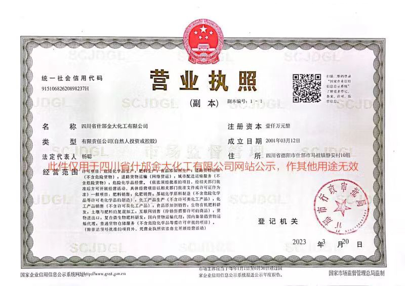 四川省什邡金大化工有限公司-是位于中國四川省的一家專業(yè)生產(chǎn)磷化工系列產(chǎn)品的廠家。所處地理位置資源豐富,交通便利,緊鄰成綿高速復(fù)線,距離兩路口火車站1000米。公司成立于1996年,多年來一直從事磷酸鹽的開發(fā)與生產(chǎn)。公司擁有職工65余人,其中各類工程技術(shù)人員20人,資產(chǎn)總額5000萬元,占地11000余平方米。